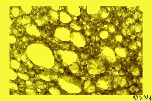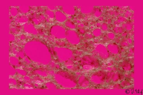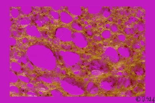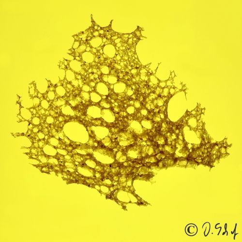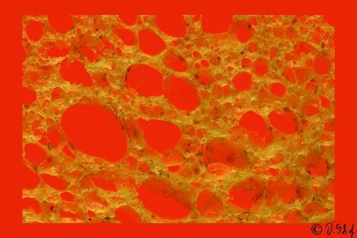The colours of the pictures were achieved totally analog with various coloured foils on the light table under the very thin slice of bread and illumination with different colours.