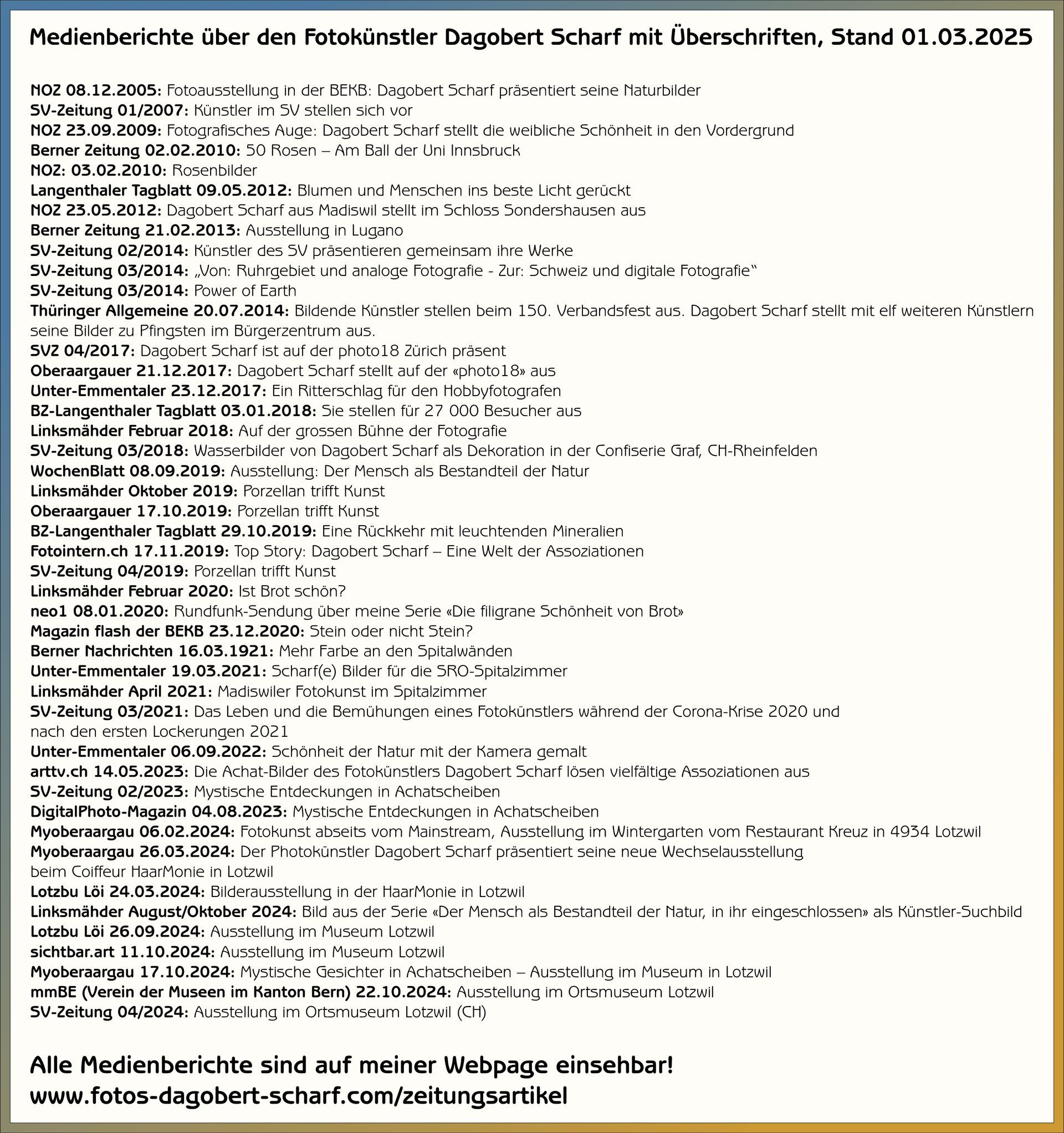 Nähere Informationen über mich, meine Ausstellungen und weitere Highlights können Sie mit folgenden Link downloaden: