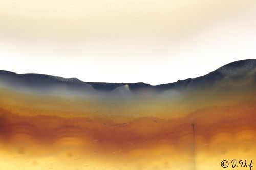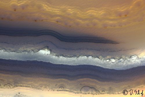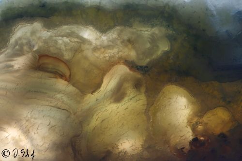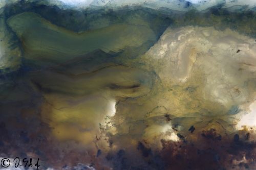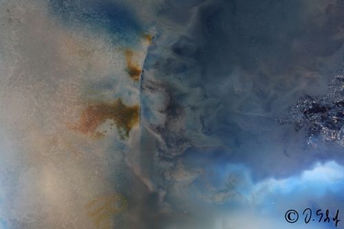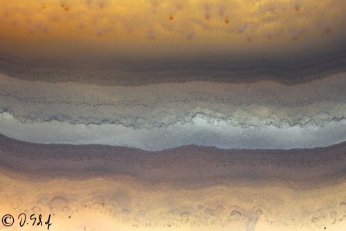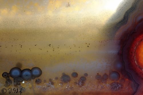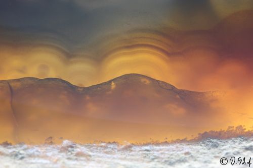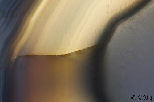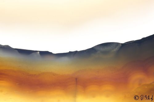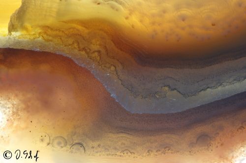 Bei diesen Bilder kann man oft nicht auf den ersten Blick erkennen, ob es Kunst ist, die vom Menschen erschaffen wurde, oder Kunst, die die Natur selber hervorgebracht hat. Es sind in Realität alles extreme Makro-Aufnahmen von Achat-Scheiben.